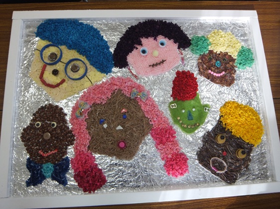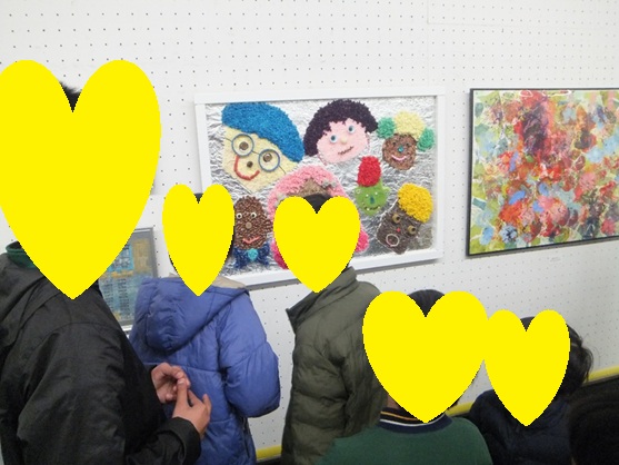 <うみのもり展覧会> 「あおぞら・ちはらだい」出展作品 [左] 「あおぞら・ちはらだい」のお友達がそれぞれのパーツを担当して作り上げました。 うみのもりの展示会の様子はチバテレビで放映され、ちはらだいの作品が映りました。 [右] 「僕たちの作品なかなかいいじゃん♪」なーんて♪そんな声も聞こえてきそう!